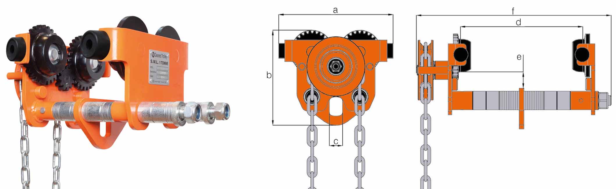 This high quality trolley range is precision engineered so that it works for W.L.L. capacities from 500kg up to 10 tonnes. The geared trolley enables exact positioning or easy traversing of large loads with manual hoists.